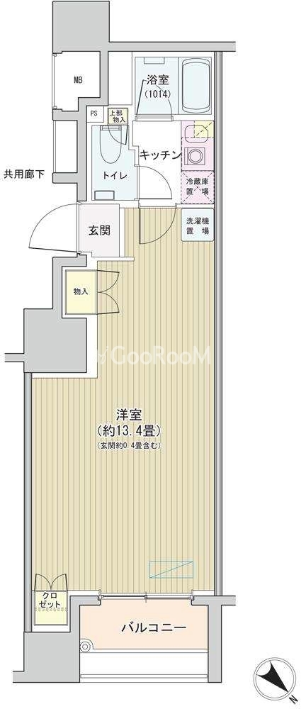 北東向き、 広さ31.84㎡のお部屋です。