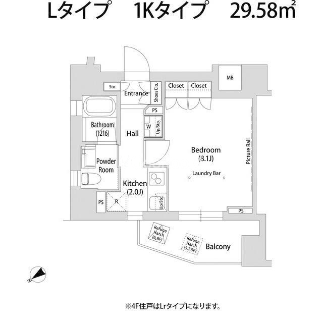 | 間取り | 1K | 専有面積 | 29.58㎡ |