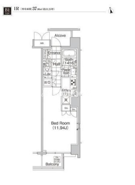 | 間取り | 1R | 専有面積 | 37.06㎡ |