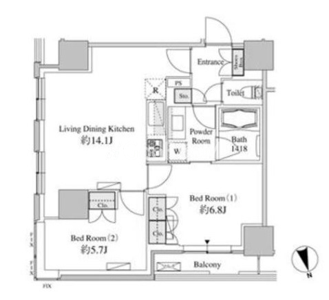 | 間取り | 2LDK | 専有面積 | 57.74㎡ |