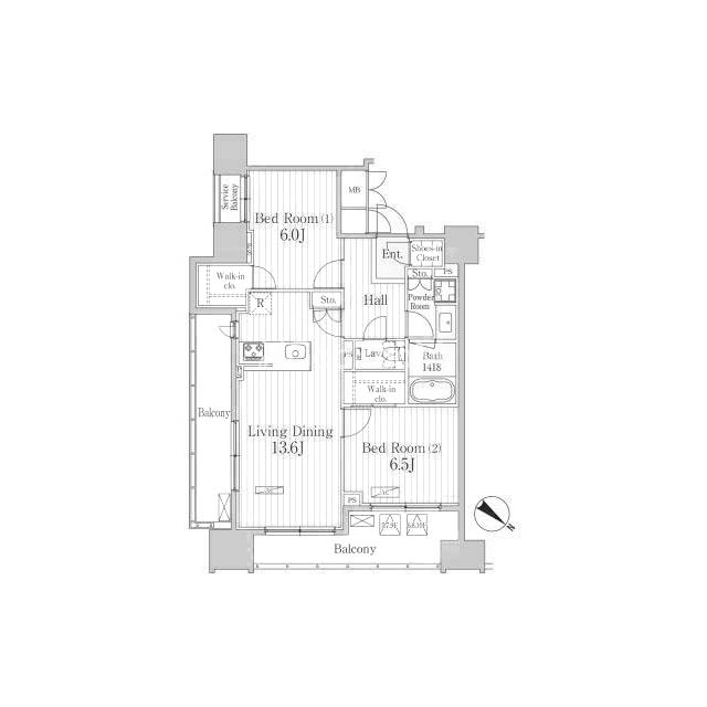 | 間取り | 2LDK | 専有面積 | 63.58㎡ |